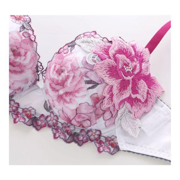250703 ブラ 下着 3/4カップブラジャー レディース 女性用 PUP ピーアップ 谷間ブラ 盛り 盛れる 谷間 サイズアップ パッドなし パットなし セクシー下着 勝負下着 かわいい 可愛い アップリケ 花柄 刺繍 大きい胸 大きいサイズ グラマーサイズ Eカップ Fカップ 1-sa