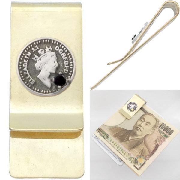 ★エリザベス女王のシルエットの小さめコインモチーフがワンポイントのブラスマネークリップ。