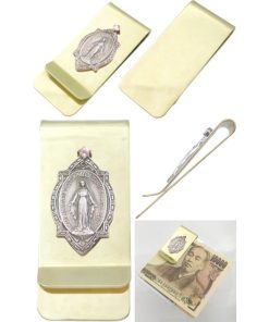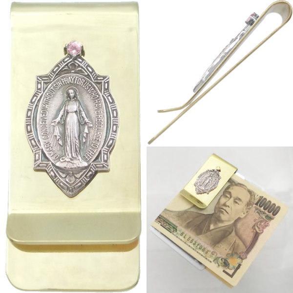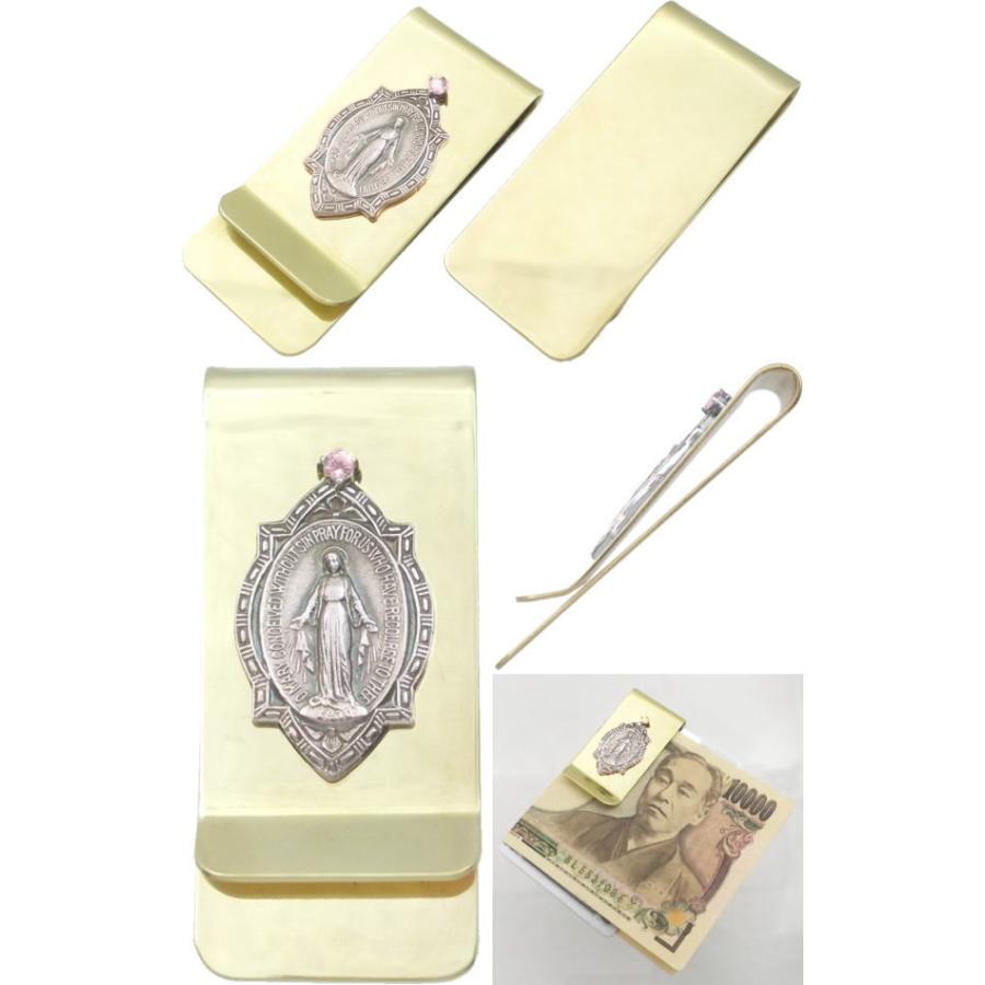 (10月)ピンクトルマリン フレーム マリアメダイ ブラス マネークリップ 誕生石 ギフト