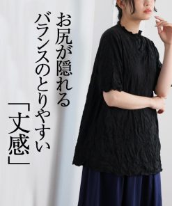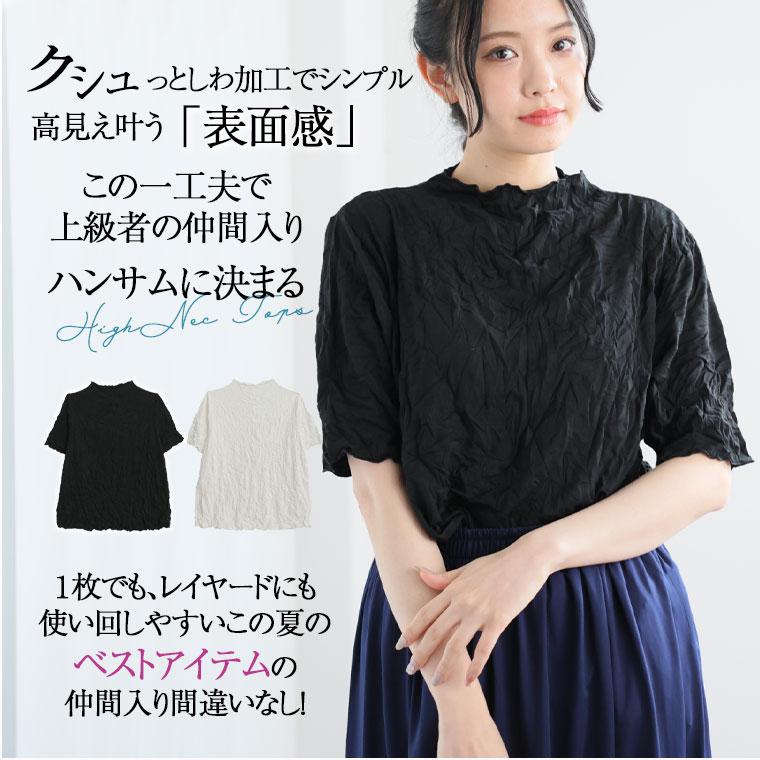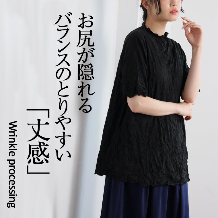 A HAPPY MARILYN 大きいサイズ レディース トップス クシュクシュしわ加工 お洒落に首元隠し ハイネックトップス オリジナル カットソー プルオーバー LL 3L 4L 5L 6L