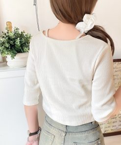 キーワード:tシャツ レディース クルーネック ショート丈 七分袖 五分袖 無地