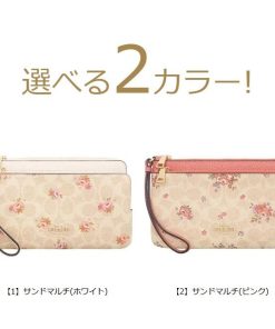 レザー×ベージュのシグネチャー総柄PVCにフローラルプリント(花柄)、ロゴ金具がオシャレなL字ファスナー長財布です。収納が2つあり、カード入れやフリーポケットなど収納力も高く、スマホや通帳も入る大きさです。ストラップ付きのクラッチ型お財布ポーチはスマホケースや化粧ポーチなどマルチに大活躍です!